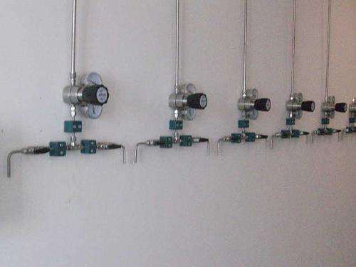 在某些情況下,當(dāng)?shù)叵酪?guī)范建議甚至要求將主要的氣體源如鋼瓶、杜瓦瓶和液體儲(chǔ)槽放置在工作區(qū)外的指定區(qū)域,然后將氣體通過(guò)管道系統(tǒng)輸送至廠房?jī)?nèi),并可通過(guò)安裝在工作臺(tái)上的使用點(diǎn)二級(jí)減壓器方便地調(diào)節(jié)壓力和流量。